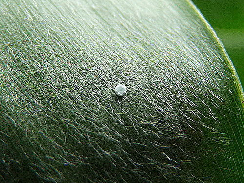 野薑花的葉面上.有一些小灰蝶的卵